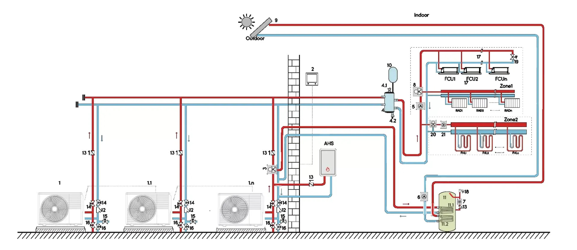 Osztott és monoblokkos rendszerű hőszivattyú telepítés, gépészeti szereléssel, vezérléssel.